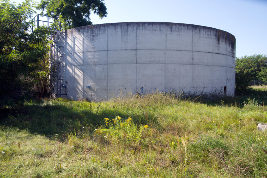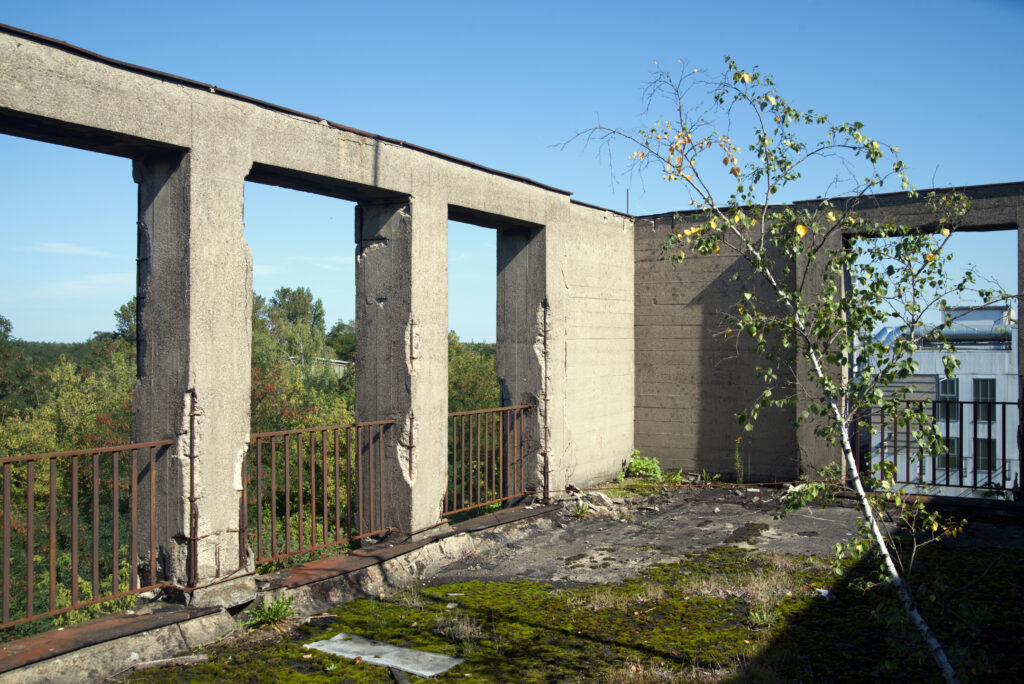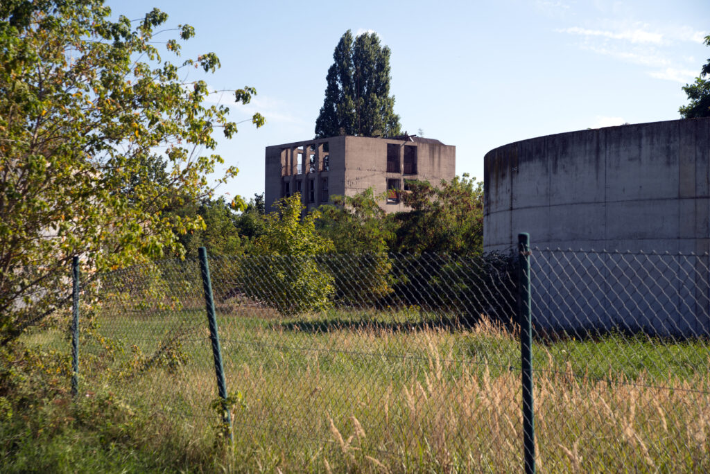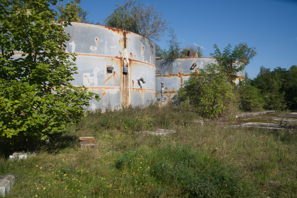 Wirklich auffällig, weil verlassen und vom nachindustriellen wilden Grün vereinnahmt, waren riesige Tanks. Diese gehörten zu einer Anlage für die Gewinnung von Energie aus Bioabfällen. Sie speicherten das Material, aus dem später Biogas gewonnen werden sollte. Die Anlage war aber nicht nur ein ökonomisch und finanziell gescheitertes Nachwendeprojekt. Einwohner der Stadt beklagten den unerträglichen Geruch, den die Anlage verursachte.