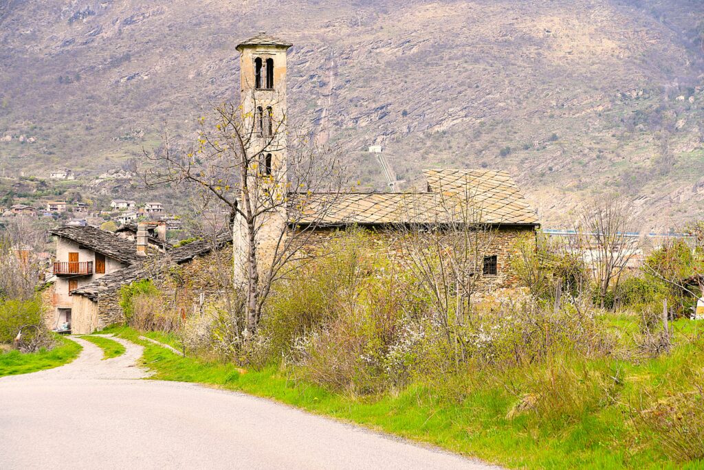 Auf der sich ins Susa-Tal kurvenden Straße jedoch fielen mir zwei mutmaßlich verlassene Gebäude auf. Eine kleine mittelalterliche Kapelle, mit einen fragil wirkenden, weil schief stehenden und schmalen Turm.